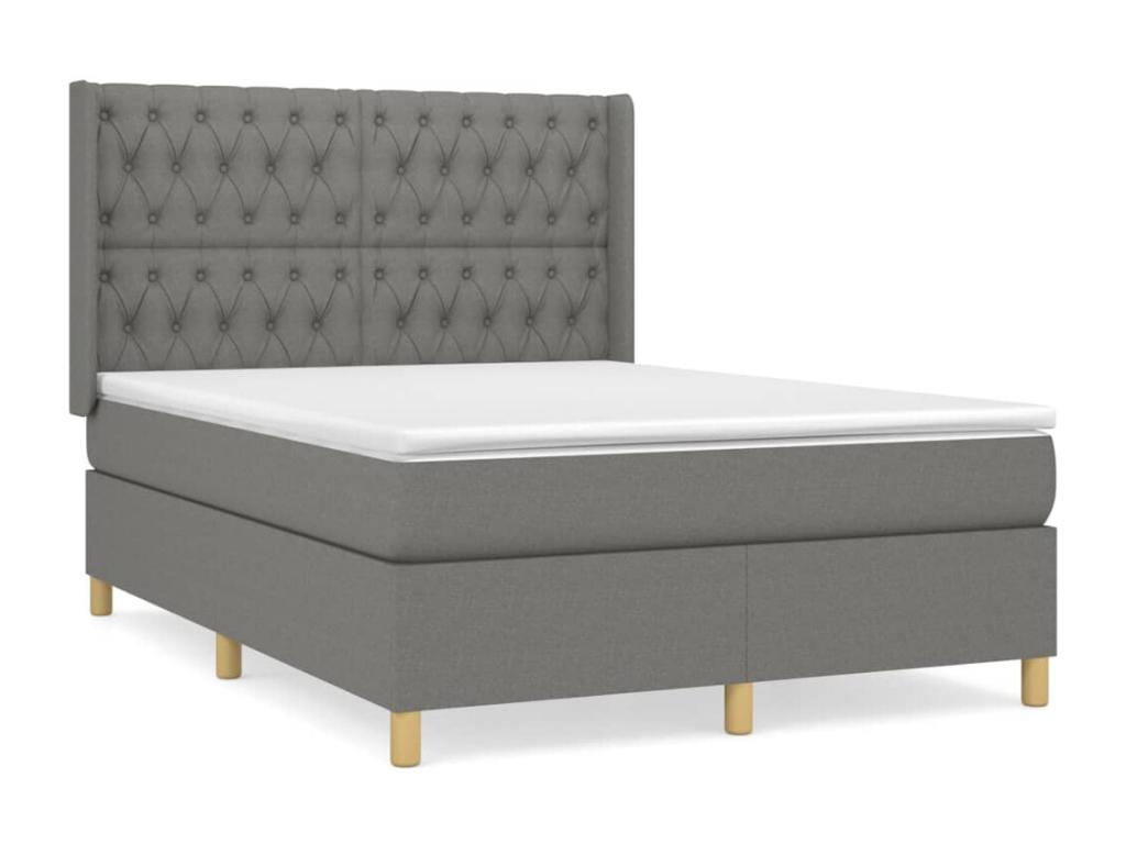 Cama box spring con colchón tela gris oscuro 140×190 cm